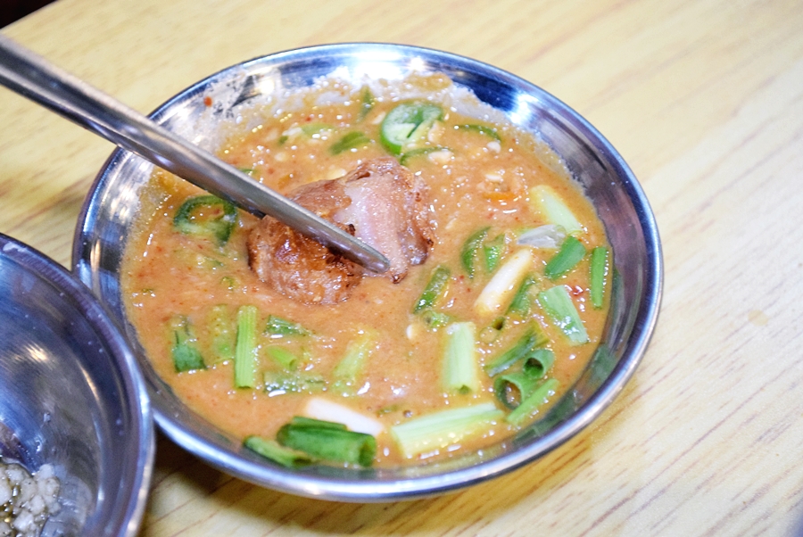 파 송송 썰어서 넣은 된장이 들어간 이 장이 참 맛있어요. 곱창, 막창과 찰떡궁합이거든요. 이 장은 어느 막창집에 가도 나오죠. 막창을 더 맛있게 먹는 방법이에요.