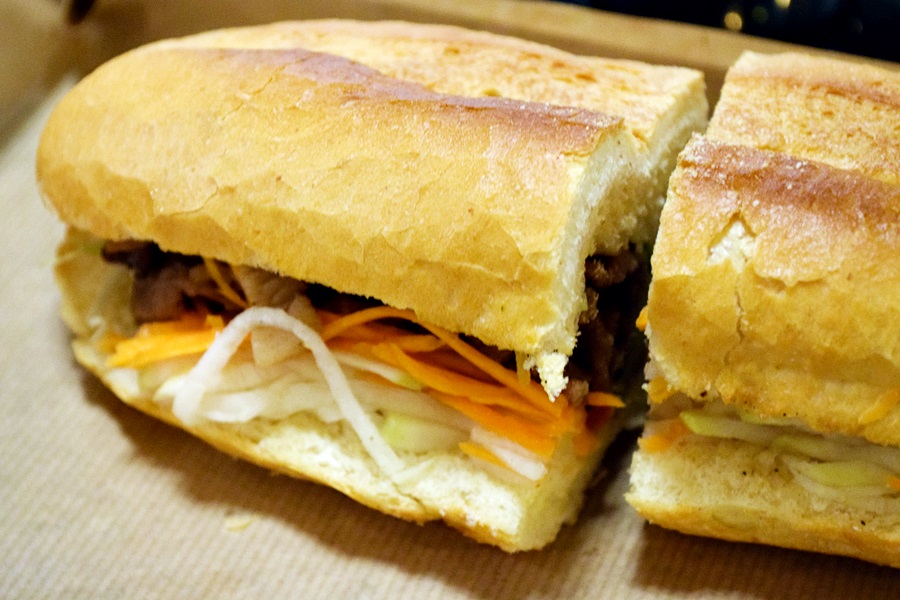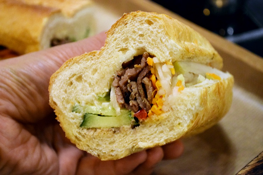 겉은 바삭하고 속은 부드러운 바게뜨빵. 그 속에 고기와 야채가 들어가 있는데요, 맛이 꽤 좋아요.
