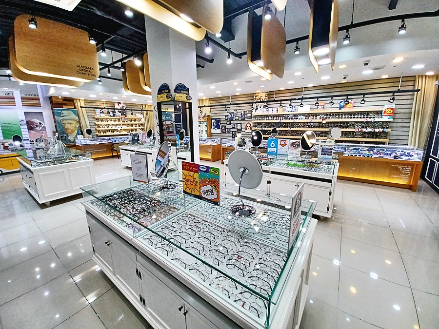 여기는 카페형 안경점이라고 해도 될 것 같아요. 안경점 안에 자체적으로 카페를 가지고 있어요. 커피 판매를 위한 카페가 아니라 안경점 찾은 손님들이 쉴수 있도록 해놓은 카페에요. 음료도 무료로 제공이 되고요. 이런 휴식 공간만 봐도 규모가 꽤 큰 곳이라는 것을 알 수 있어요.