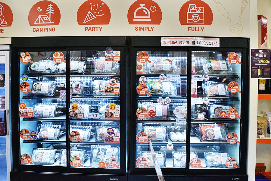 여기는 들어서는 순간 그 규모에 한번 놀라게 되요. 가게가 엄청 큰 것은 아니지만 이 공간 속에 들어있는 아이템 자체가 가 그 종류별로 어마무시하거든요. 밀키트를 비롯해서 캠핑이나 나들이 가서 간단하게 먹을 수 있는 것들이 거의 다 있다고 보면 되요.