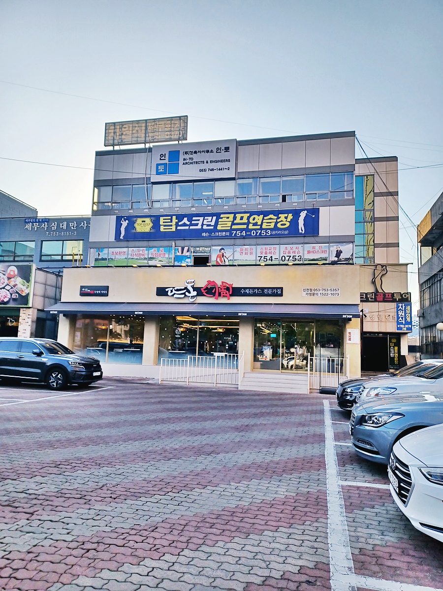 대구 뜨돈은 대구에도 여러군데 있어요. 제가 방문한 곳은 신천지점이에요. 대구 동구에 있는데요, 뜨돈의 경우 어디를 가든 주차장도 넓고 매장도 넓게 잘 되어 있거든요. 여기도 마찬가지에요. 주차장이 굉장히 넓어서 주차걱정 전혀 없어요.