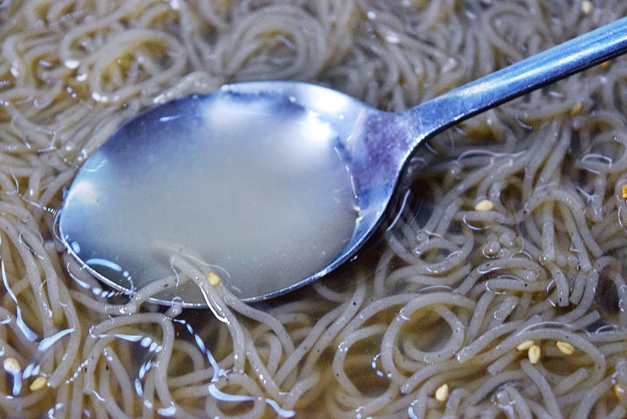 냉면이 나왔어요. 여기 냉면은 특이한 것이 주문과 동시에 반죽을 하거든요. 직접 주방에서 면을 바로 뽑아서 내기 때문에 보다 신선한 냉면을 먹을 수 있어요. 면발 자체가 남달라요. 거기에다가 살얼음이 들어간 냉면인데요, 한눈에 봐도 내공이 느껴지는 그런 냉면이에요.