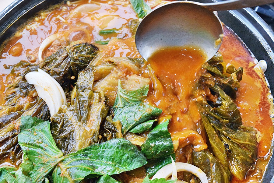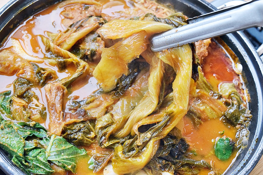 건더기가 아주 푸짐하게 들어 있어서 좋더라고요. 양파, 버섯, 깻잎을 비롯해서 다양한 건더기들이 푸짐하게 들어 있는 감자탕이에요. 국물도 아주 진하고 구수해요. 자고로 감자탕이라는 것이 국물 맛이 좋아야하는데요, 여기는 역시 감자탕 전문점다운 맛과 비주얼이에요.
