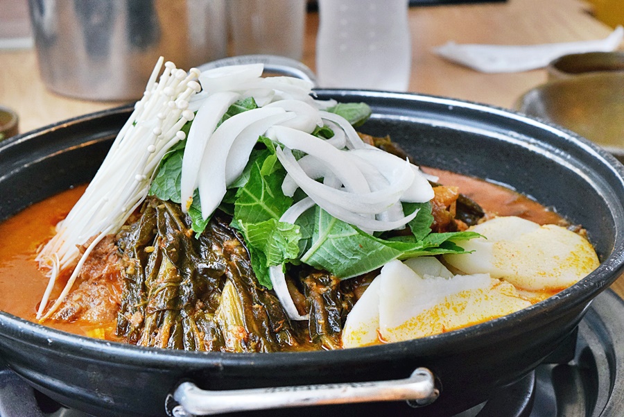 감자탕 한 상이 차려졌어요. 테이블마다 이렇게 버너가 있어서 국물을 졸여가면서 먹을 수 있어서 좋더라고요. 각종 반찬은 셀프바가 있어서 언제든지 리필해서 먹을 수 있도록 되어 있어요. 반찬 인심도 정말 좋은 곳이에요.