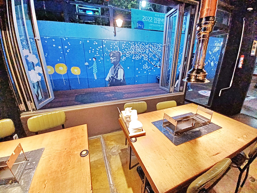 양고기도 먹으면서 김광석거리 풍경을 바로 코앞에서 식사내내 볼 수 있는 곳이에요. 대봉동 모임장소도 최적의 식당이 아닐까 싶어요. 양고기도 먹고 거리 풍경도 보고, 수다도 떨고요. 대봉동 양고기 맛집 음밀한양 다녀왔어요. 김광석거리에 오랜만에 가보는 것 같아요. 여기도 예전에 못 보던 곳인데요, 제가 너무 오랜만에 왔나봐요.