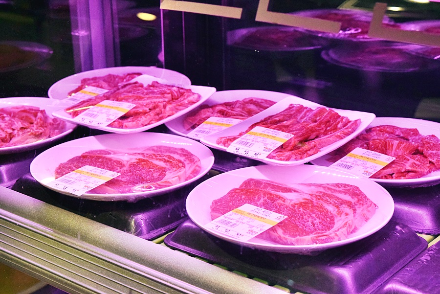 청담원 한우전문식당에는 이렇게 정육점처럼 고기가 판매되고 있다. 몇 인분 몇 인분 주문을 하는 것이 아니라 고기가 판매되고 있는 진열대에 가서 내가 먹고 싶은 것을 골라서 오면 된다. 고기의 무게와 함께 가격이 모두 적혀져 있다. 고기에 가격은 정해진 것이 아니라 그날 그날 시세에 따라서 다르다고 한다. 정육점 형태로 한우가 판매되고 있기 때문에 다른 한우 식당 보다는 비교적 저렴하게 한우를 먹을 수 있는 것 같다.
