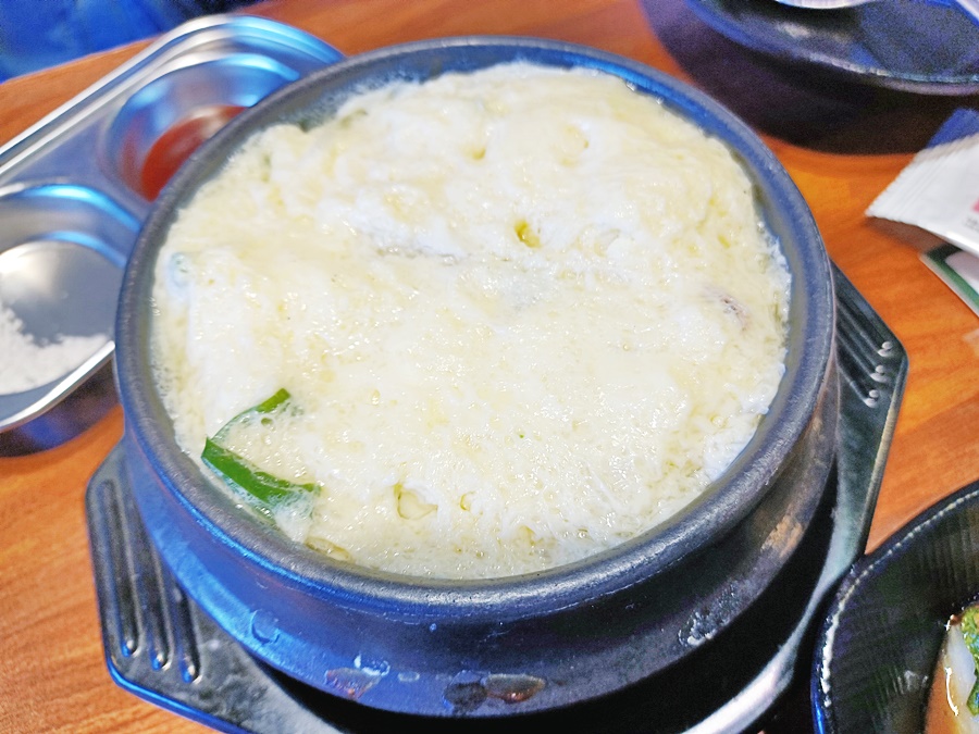 달걀찜도 아주 맛있더라고요. 역시 달걀찜은 이런 고깃집에 와서 먹어야 맛있어요. 집에서는 절대 이 맛이 안 나거든요. 된장국도 이렇게 나와요. 구수하니 아주 맛있어요. 된장국이 서비스로 나오니 인심도 좋은 곳이에요. 맛있는 소고기 갈비살 구이와 함께 여러가지 서비스 음식들, 아주 다채롭게 푸짐하게 잘 먹었어요. 대구 북구 맛집 중에서 소고기 잘하는 곳으로 추천하고 싶은 곳이에요.
