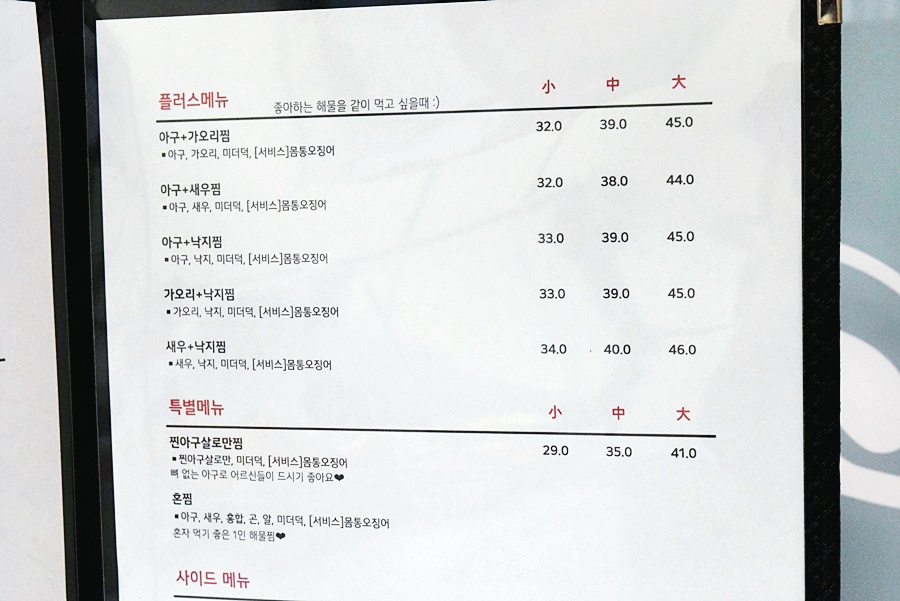 요즘 해물탕, 해물찜 가격이 많이 올랐죠.