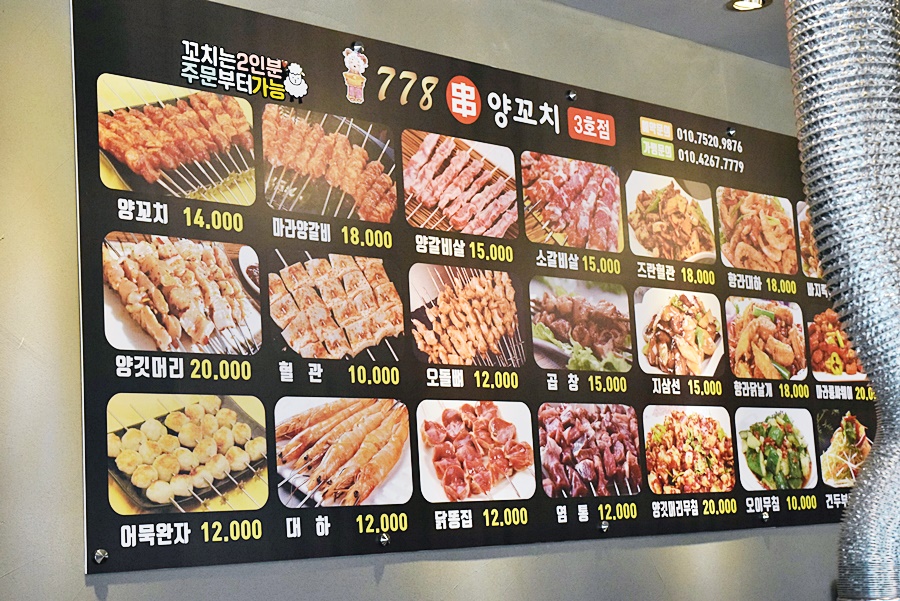 안산 양고기 맛집으로 강추하고 싶은 곳이에요. 778양꼬치라는 곳을 다녀왔어요. 추천하는데는 다 이유가 있어요. 식감, 맛, 풍미 모두 잡은 곳이거든요. 잡내 하나 없이 정말 맛있는 양꼬치를 먹을 수 있는 안산 양꼬치 잘 하는 곳이에요. 안산에서 꼬치 드시려면 여기로 가세요. 양꼬치 이외에도 다양한 꼬치요리들이 있는 곳이에요.