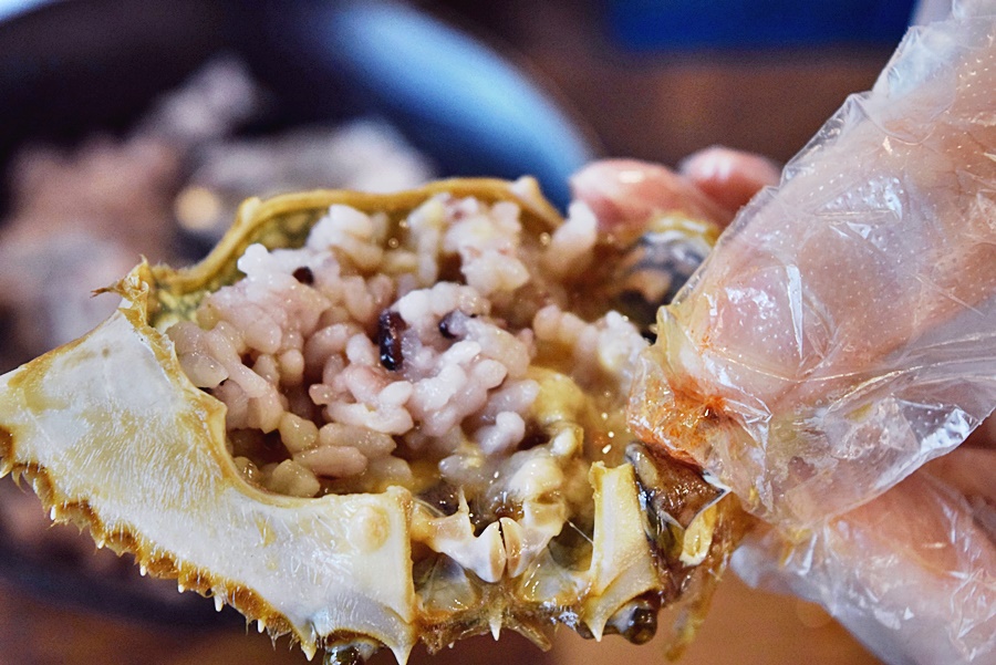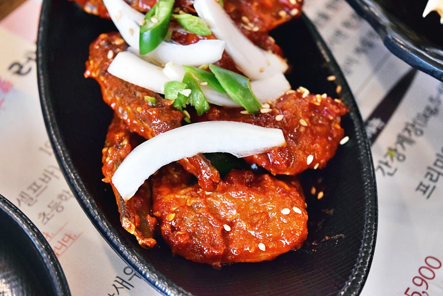 게가 굉장히 실해요. 국산이 아니라 외국산이에요. 유럽 어느 나라에서 오는 걸로 제가 봤는데요, 국산 게와 큰 차이가 없더군요. 맛도 그렇고 모양도 그렇고 말이에요. 거기다가 양념을 워낙 잘 해서 그런지 비린내 하나 없이 정말 맛있게 먹었어요. 게딱지에 밥도 야무지게 비벼 먹었어요. 양념이 굿이에요.