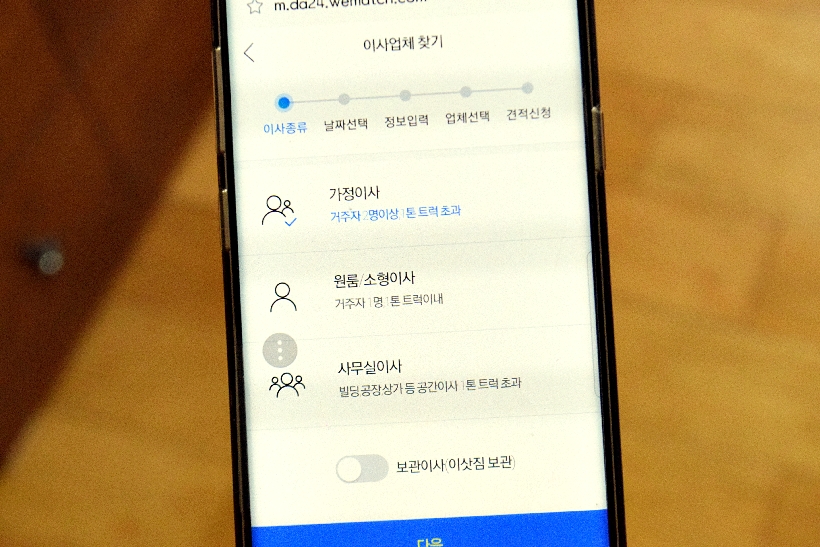 이사종류, 평수, 주소 등 몇가지 정보 입력하고
