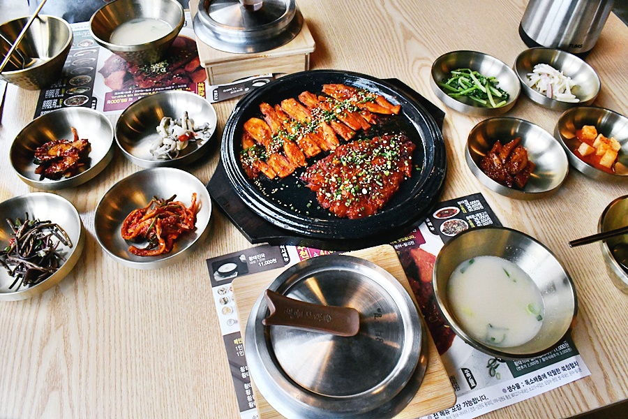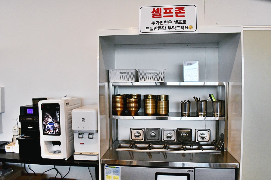 반찬이 여러가지가 나와요. 아주 깔끔한 밑반찬들이에요. 아무래도 한식 전문점이다보이 이런 반찬도 잘 만드시는 것 같아요. 반찬의 경우 셀프바가 따로 마련이 되어 있어서 반찬이 떨어지면 리필 요청할 필요 없어요. 눈치 볼 필요없이 셀프바에 가서 가져오면 되니 정말 편해요.