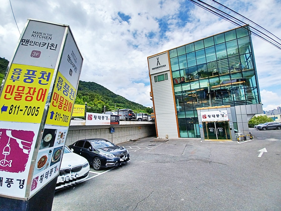 여기 주차장이 아주 잘 되어 있어요. 월드컵대로 쪽에 있는 식당이에요. 완전 대로변은 아니고 대로에서 살짝 들어와 있어서 더 조용하고 좋은 것 같아요. 위 건물 1층이 황태풍경이에요. 황태 전문점이에요. 2층은 민물장어를 전문으로 하는 곳이에요. 주차장이 여러군데 있어서 주차걱정 전혀 없어요.