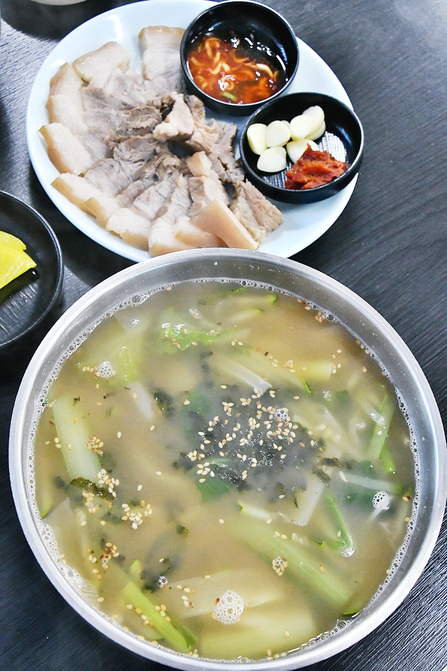자, 여기서 끝이 아니에요. 수육도 함께 판매를 하시는데요, 둘이 가서 수육도 하나 주문을 해서 같이 나눠서 먹었어요. 수욱도 진짜 구수하고 연하면서도 맛있더라고요. 살코기와 지방의 비율도 최고에요. 여기에 또 김치 올려서 먹으면 더 맛있어요. 대구 저렴한 국수 맛집, 수육 맛집으로 강추드리는 정면돌파에요!
